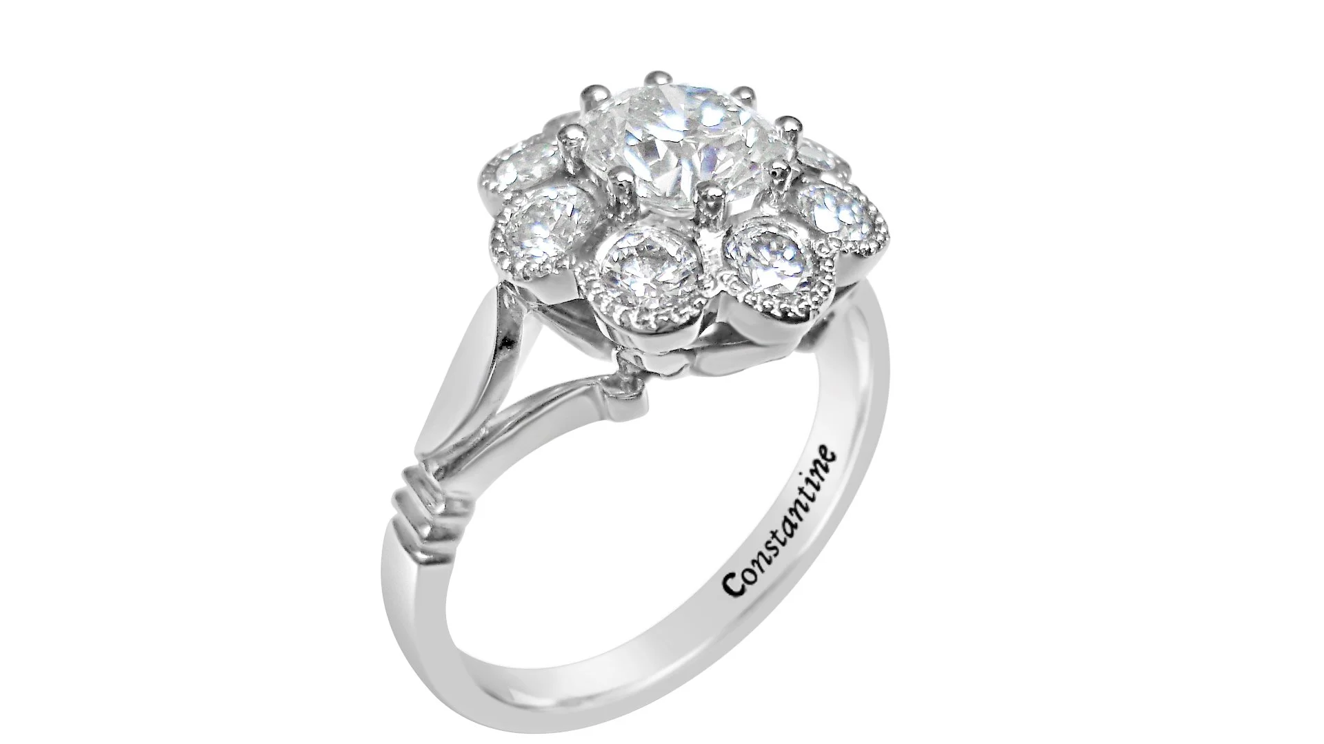 0.68cts Diamond, Claw Set with 8x Round Brilliant Diamonds - Mill Grain Set Cluster in 18ct White Gold