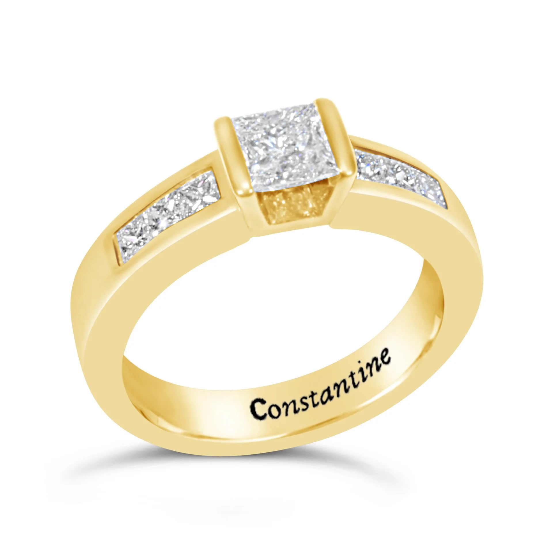 1.00ct Princess Cut Diamond with 6x 0.010cts Princess Cut Diamonds F Colour VS1 Clarity in 18ct Yellow Gold