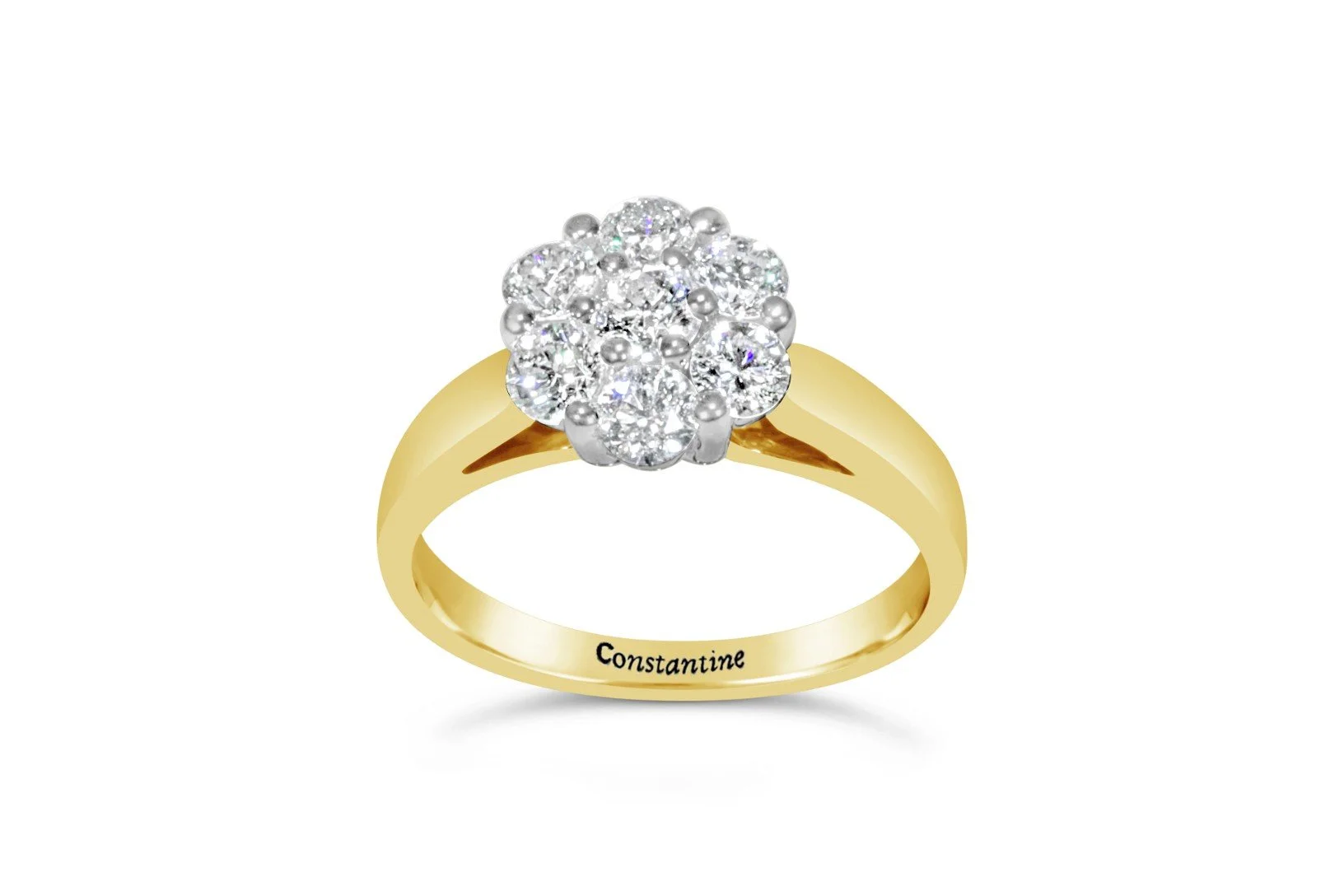 1x 0.50cts and 12x 0.2cts 18ct Yellow and White Gold Wire Cluster