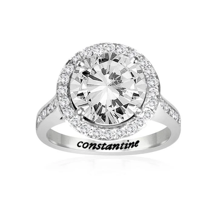 3cts F colour VS1 Diamond with Halo Surround Diamond Set Shoulders in 18ct White Gold